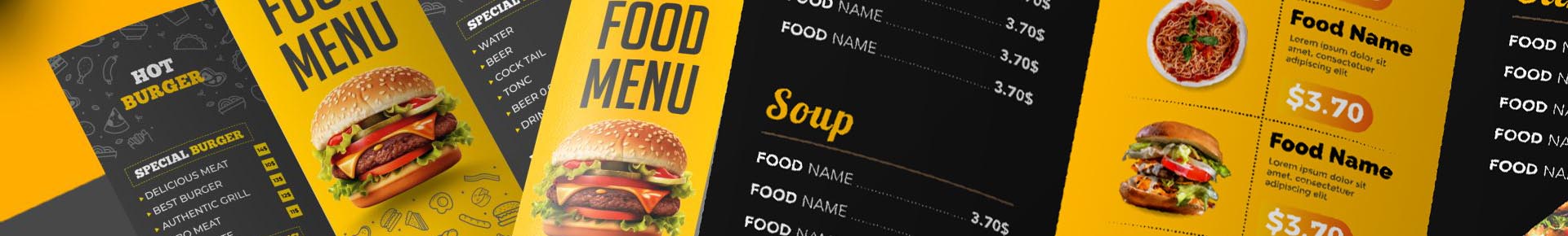 We design every type of restaurant menu, in both digital and print formats. From main food menus and drink menus to wall menus, takeout menus, QR code menus, and menu boards, we handle it all. Whether your menu is simple or extensive, seasonal or permanent, single-location or multi-unit, we tailor the design to fit your concept and your customers. Digital menus are optimized for phones, tablets, TVs, and online platforms, while print menus are delivered production-ready with proper sizing, layout, and formatting.